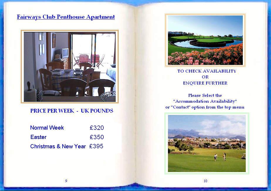 booking apartment, weekly let, prices, Tenerife penthouse, PRICES PER WEEK, Christmas and New Year £350, Easter £300, Rest of the Year £275, NOTE, Penthouse rental, Tenerife tariff Current prices only valid for bookings placed before the end of March 2005, TO CHECK AVAILABILITY OR ENQUIRE FURTHER, Please Select the appropriate contact details option from the top menu